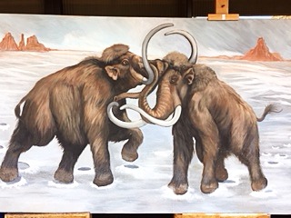Ruth's part in this fun activity weekend is to paint "atlatl" targets, which feature a prehistoric large animal as a target for the people to use as they experience this ancient hunting weapon. Atlatl is an ancient hunting tool which predates the bow and arrow, and it's similar to a spear.