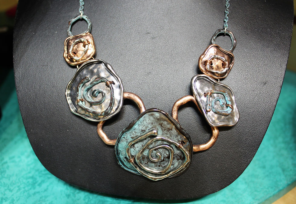 Brian and Suzanne Caldwell maintain an interesting collection of wares at Sedona Artist Market. Among their items are Brian's photography and music and Suzanne's jewelry and hats. There are also resale items that include paintings, beads, and pottery.